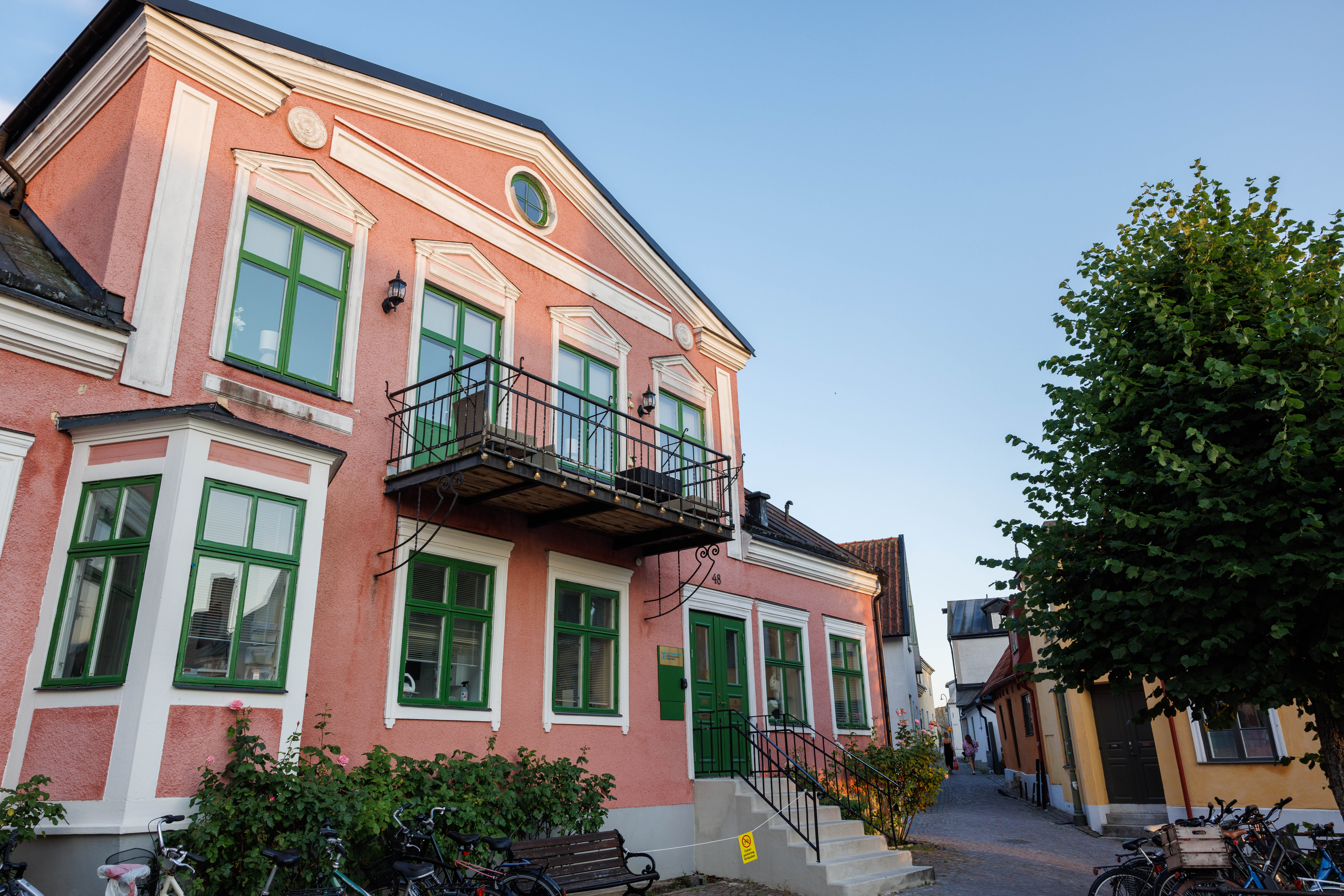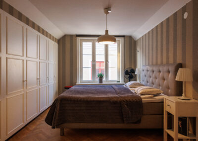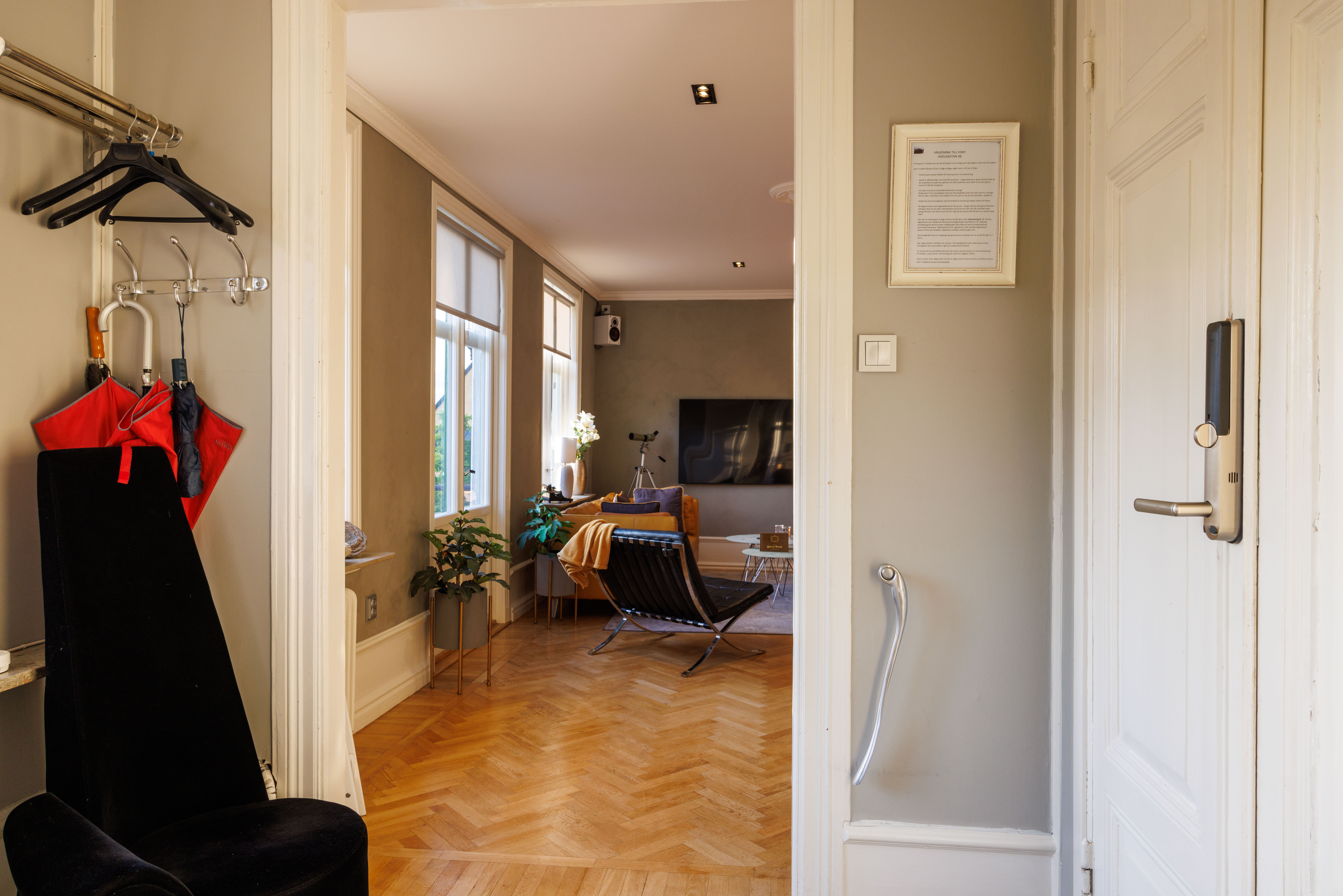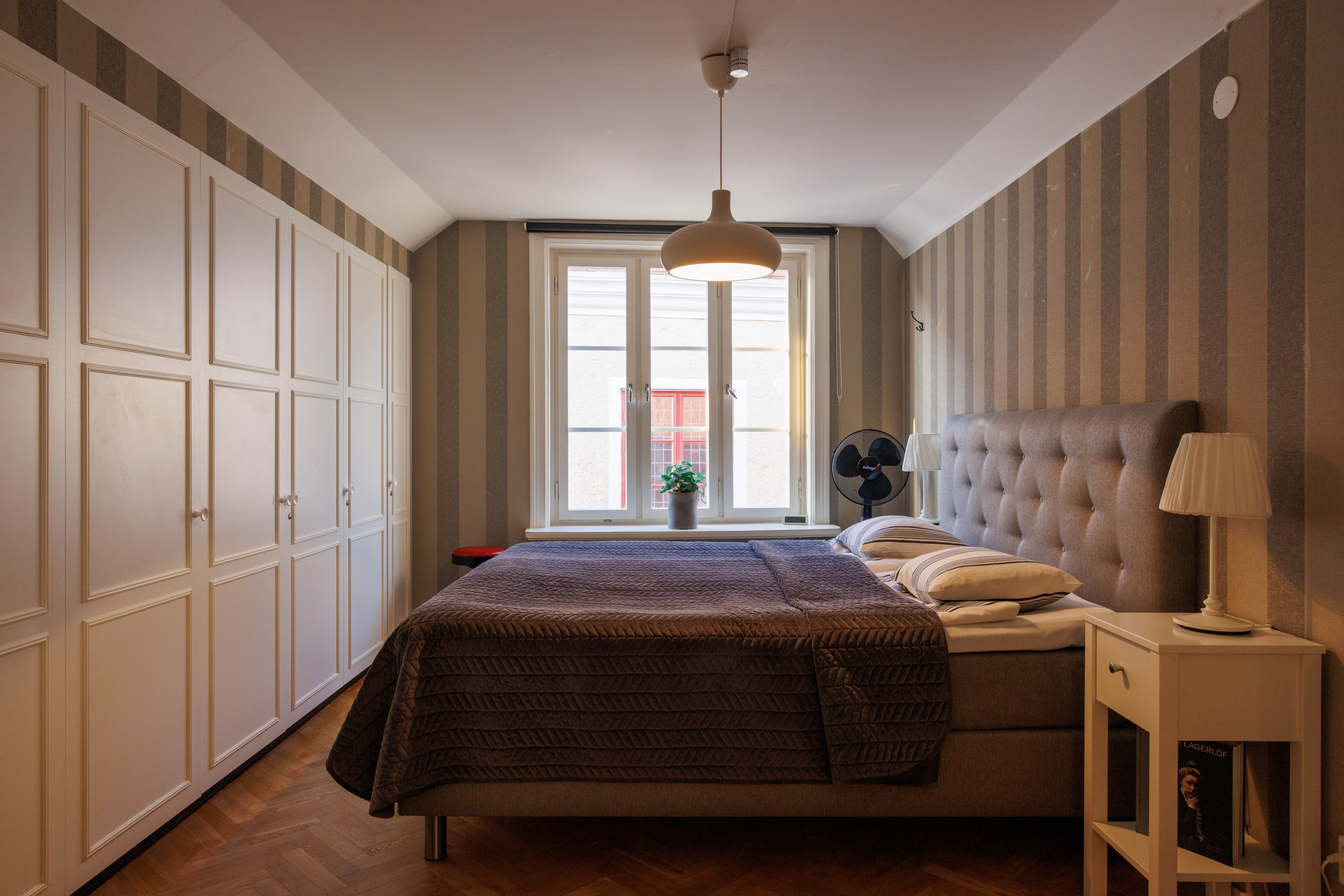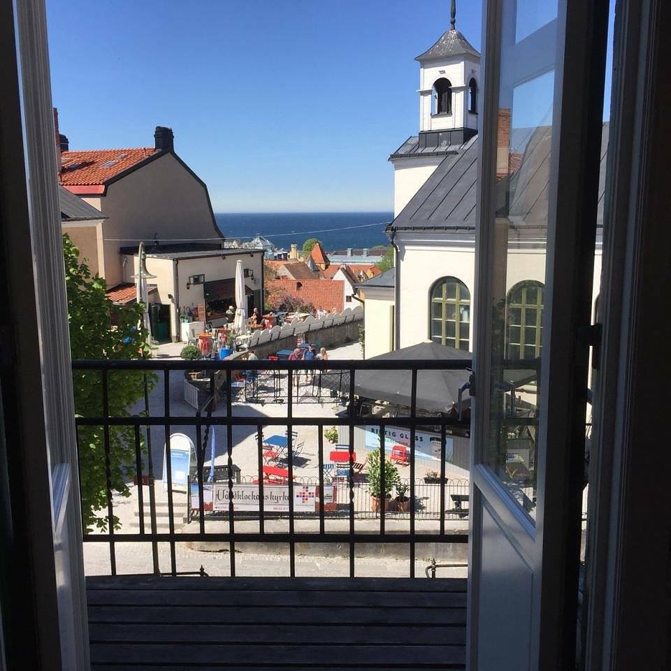 Unik modern etagevåning med en fantastisk utsikt mot Adelsgatan med havsutsikt och våningen har även utsikt mot den gemensamma innergården med utemöbler och grill som tillgång till. 4 stora sovrum med totalt 11 bäddar. Modernt fullutrustat kök med kaffebryggare, vattenkokare, kyl/frys, ugn med inbyggd micro och 2 st vinkylare och det är sittplatser för 12 personer. 2 badrum med wc/dusch/badkar och en gästtoalett.