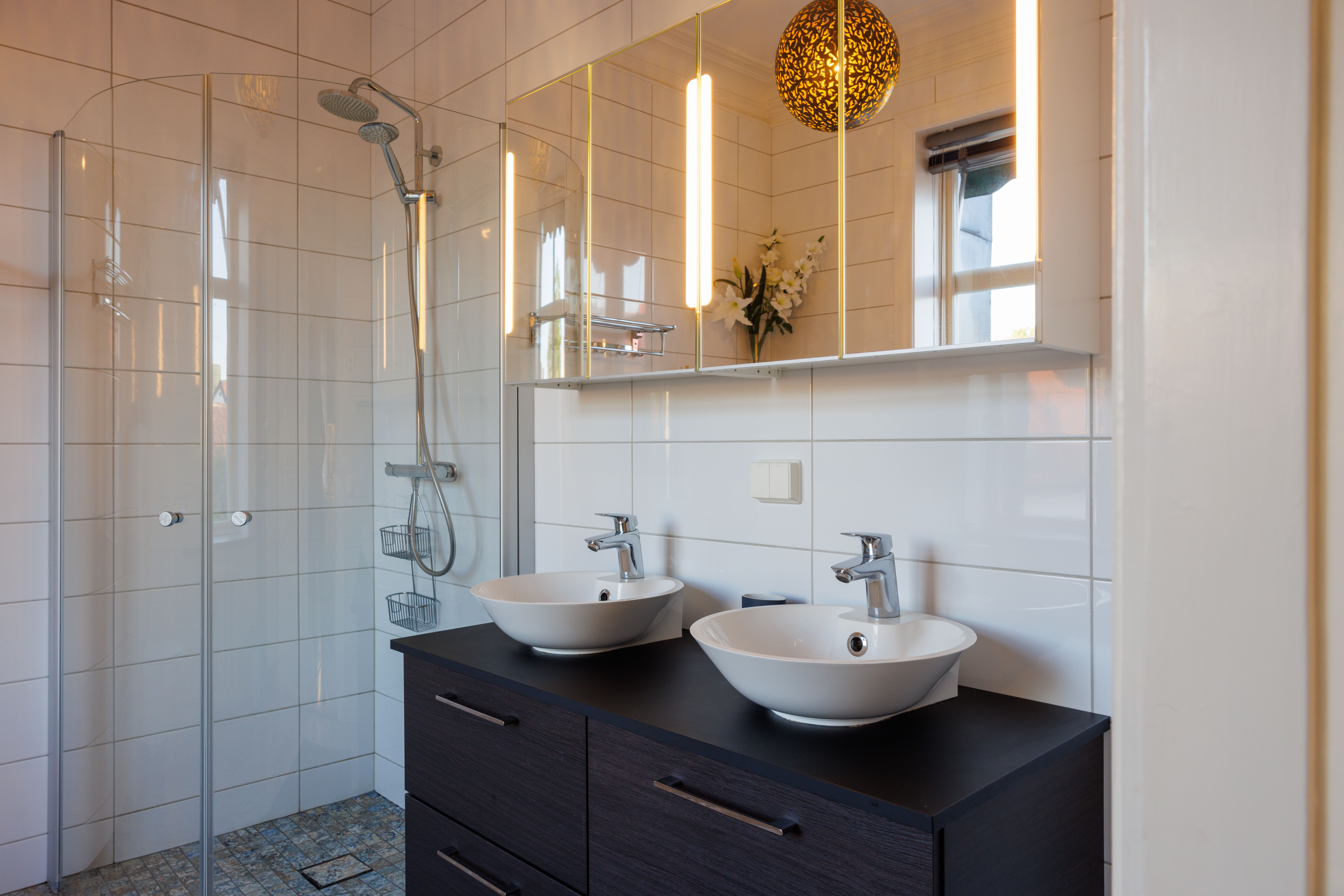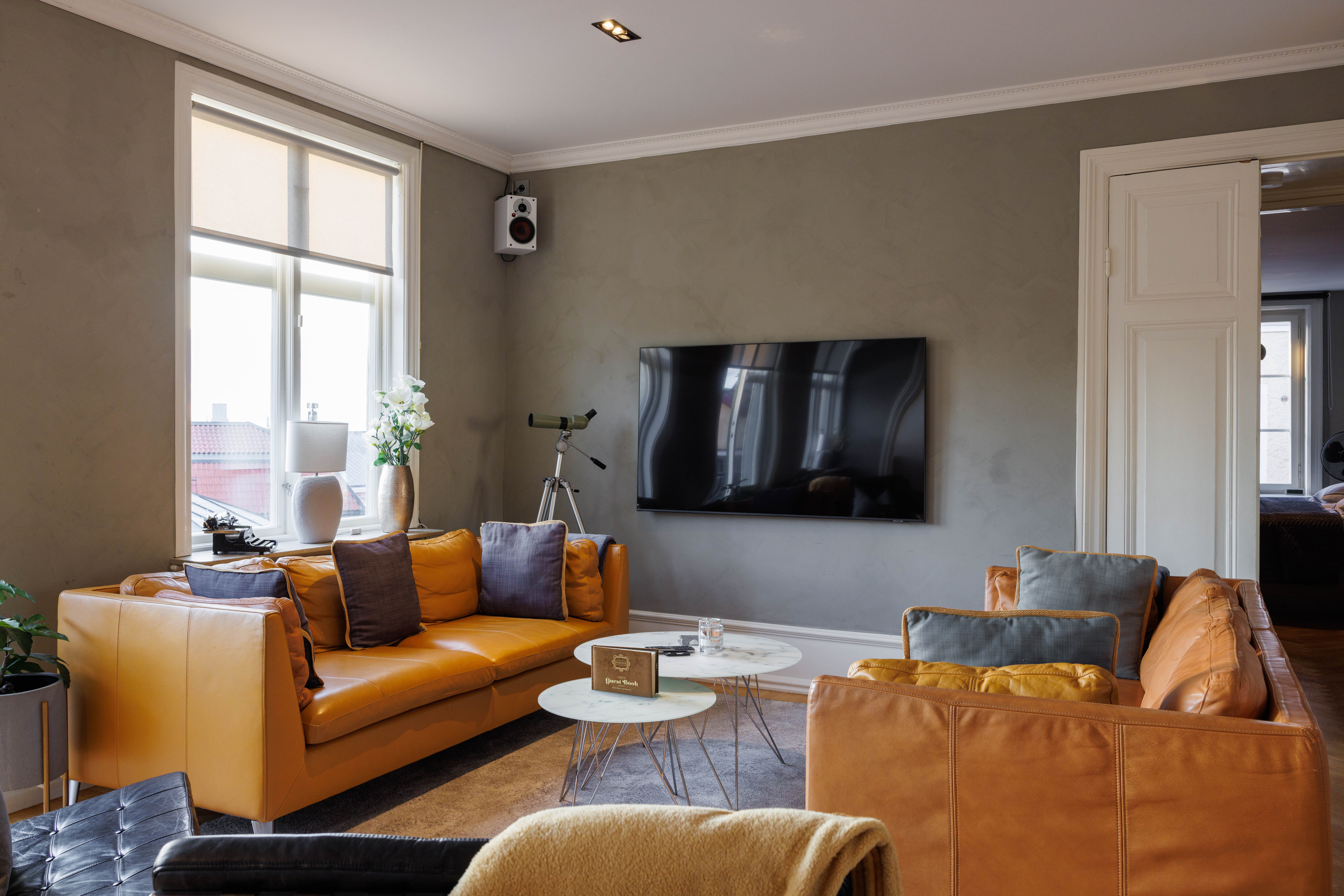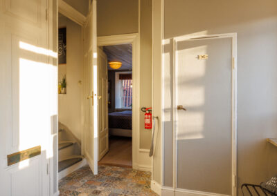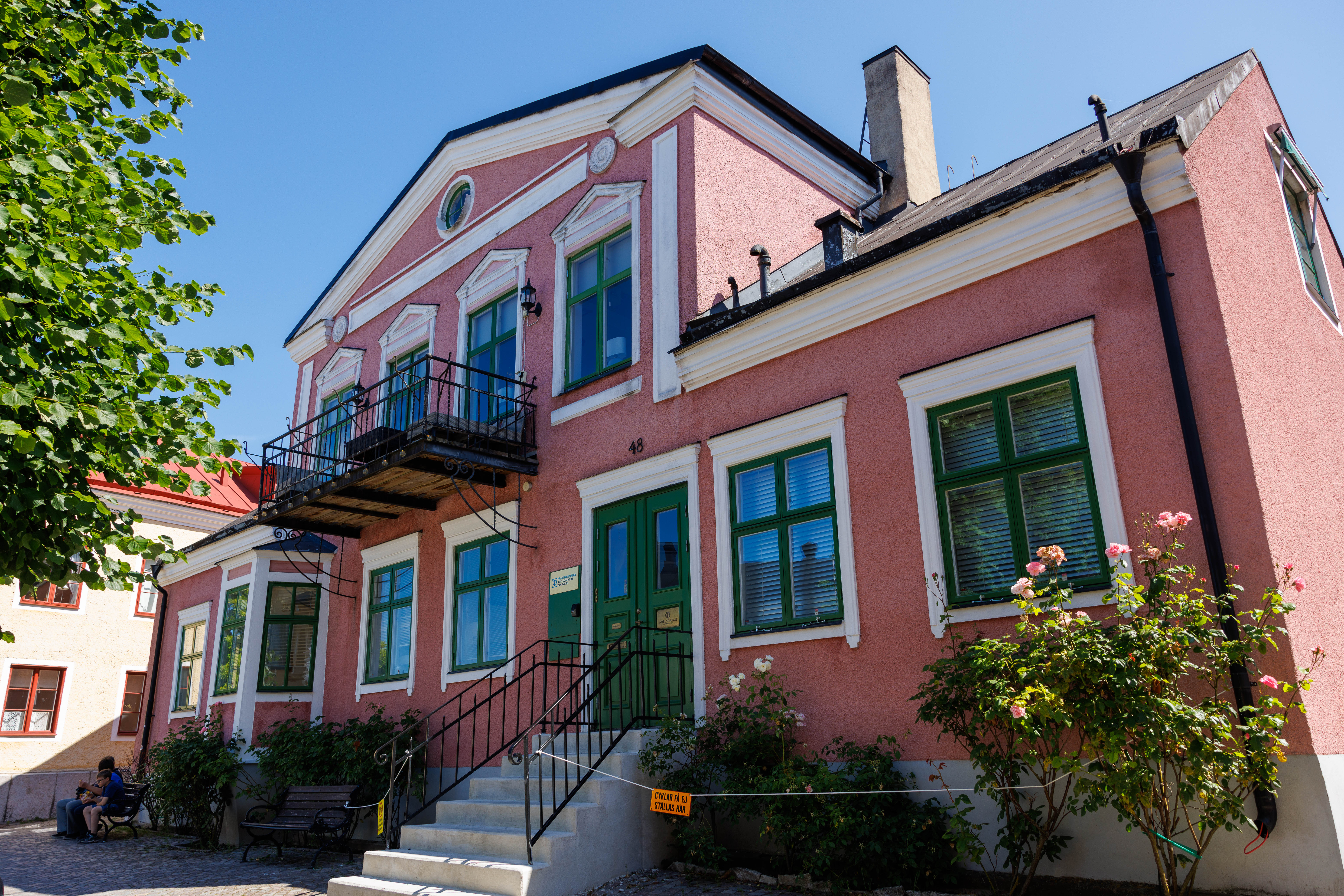 Unik modern etagevåning med en fantastisk utsikt mot Adelsgatan med havsutsikt och våningen har även utsikt mot den gemensamma innergården med utemöbler och grill som tillgång till. 4 stora sovrum med totalt 11 bäddar. Modernt fullutrustat kök med kaffebryggare, vattenkokare, kyl/frys, ugn med inbyggd micro och 2 st vinkylare och det är sittplatser för 12 personer. 2 badrum med wc/dusch/badkar och en gästtoalett.